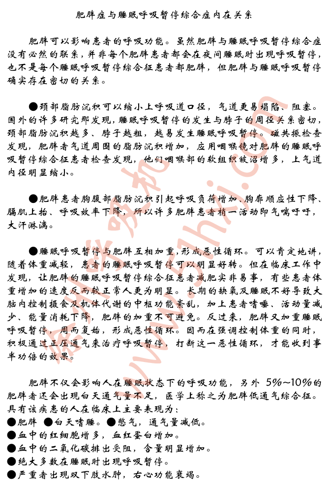 肥胖病與睡眠呼吸暫停綜合癥內在關系